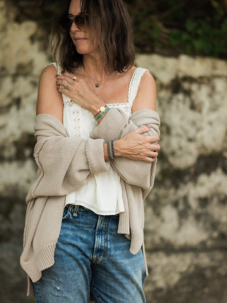 On mélange le style plus bohème de ce gri-gri avec des lignes plus épurées comme celles des bracelets TOKYO ou LAMIA.